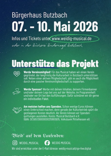 Tickets gibt es online über die Website Weidig-Musical.de oder vor Ort bei der Buchhandlung Bindernagel.